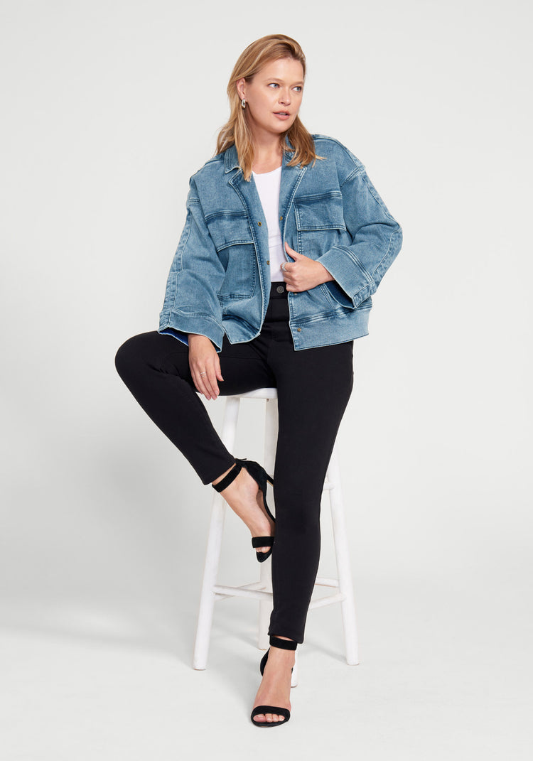 Make a statement with the modern, boxy Sloane Jean Jacket. Its oversized silhouette allows for comfortable layering, while functional pockets add practicality. Crafted from our renowned stretch denim, this jacket ensures you move freely and stylishly all year round.