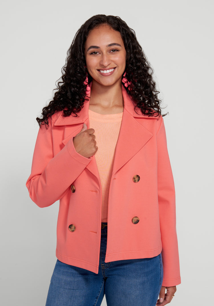 Our take on a classic, the Cropped Peacoat in 4-way stretch ponte offers a stylish layer for your favorite knits. Featuring a boxy, double-breasted design, it strikes the ideal balance between casual and polished. Pair it with the matching Dress Pant Yoga Pants for a striking monochromatic look.